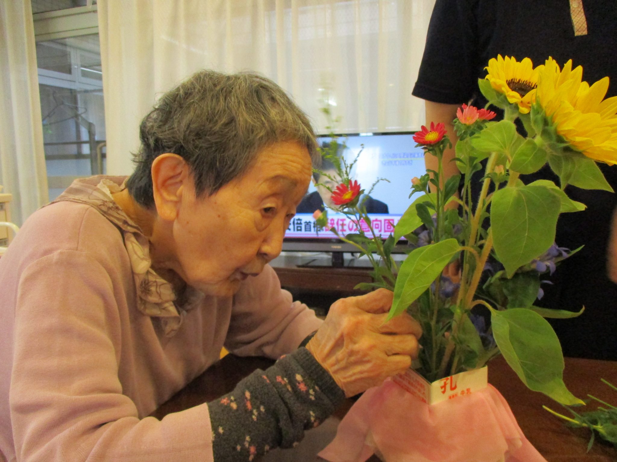 3AB 夏を感じるフラワーアレンジメント 「ひまわり」と長持ちする「小菊」で…